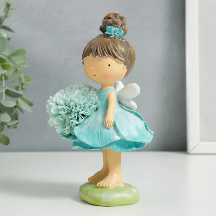 Сувенир полистоун "Малышка-фея в голубом, с цветком" 15,5х8х8 см — Характеристики