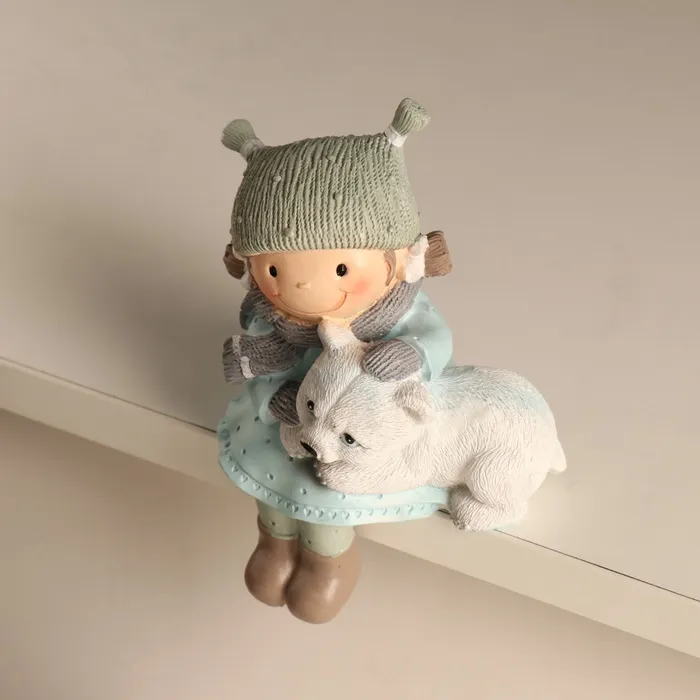 Сувенир полистоун "Малышка гладит белого медвежонка" голубой 9х7х13 см — Характеристики