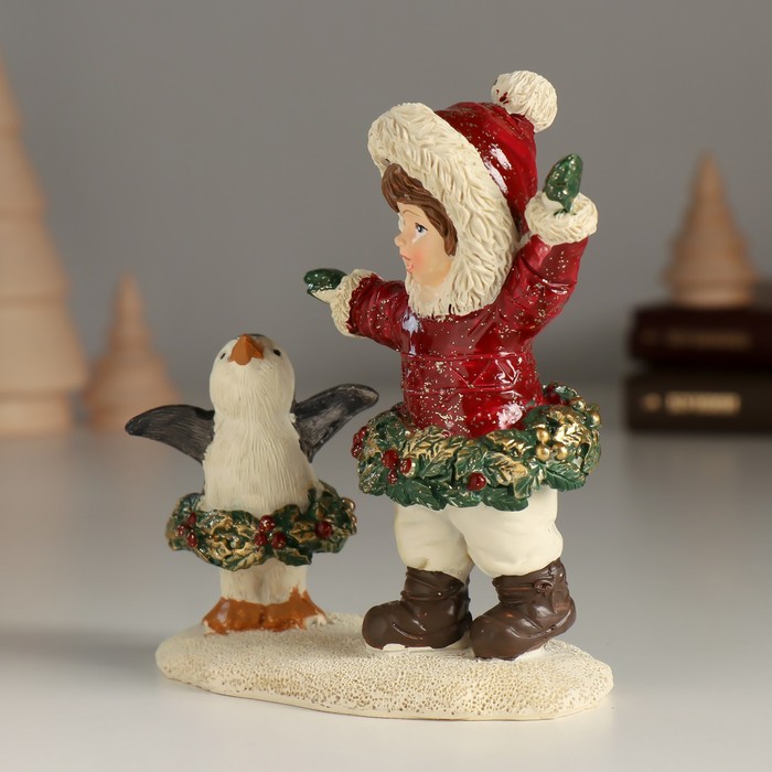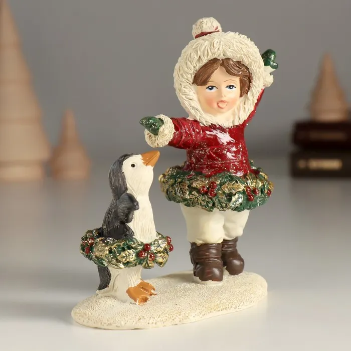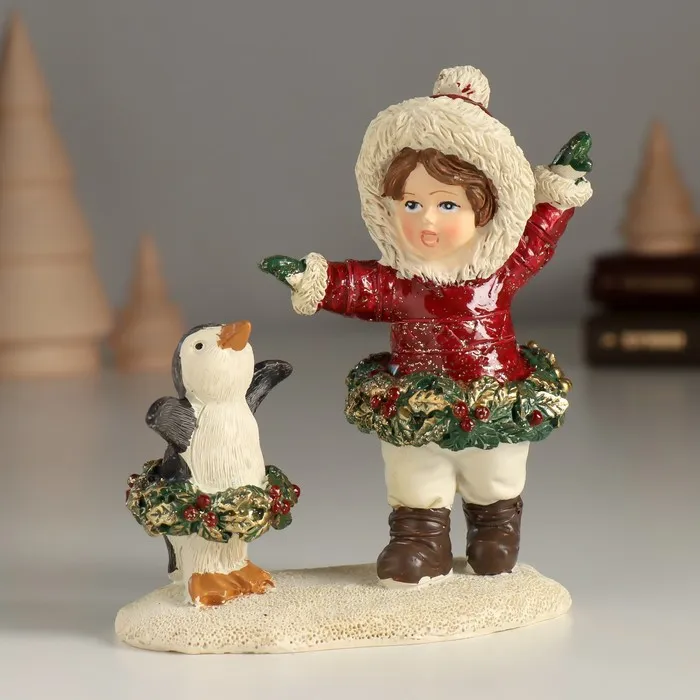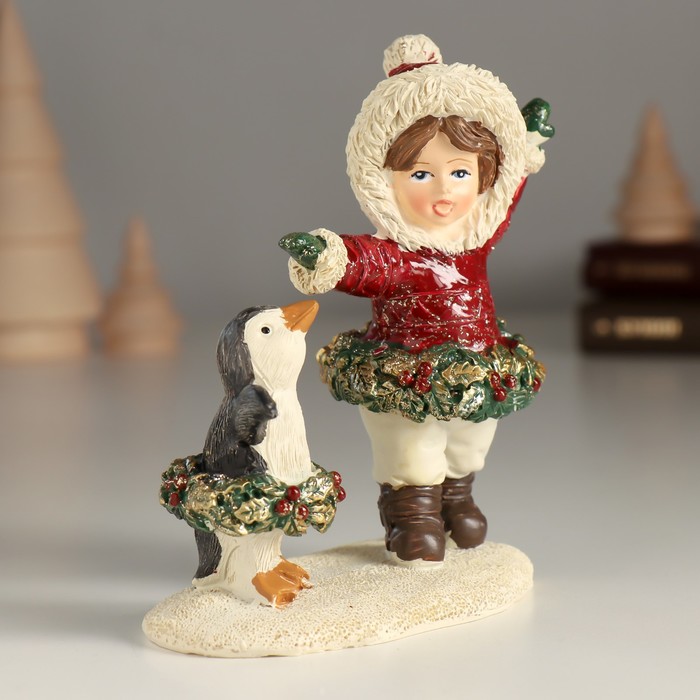 Сувенир полистоун "Малышка с пингвинёнком - танцы" 10,5х5,5х12 см — Характеристики