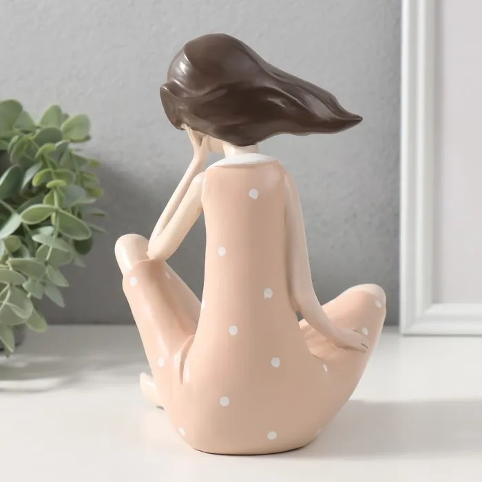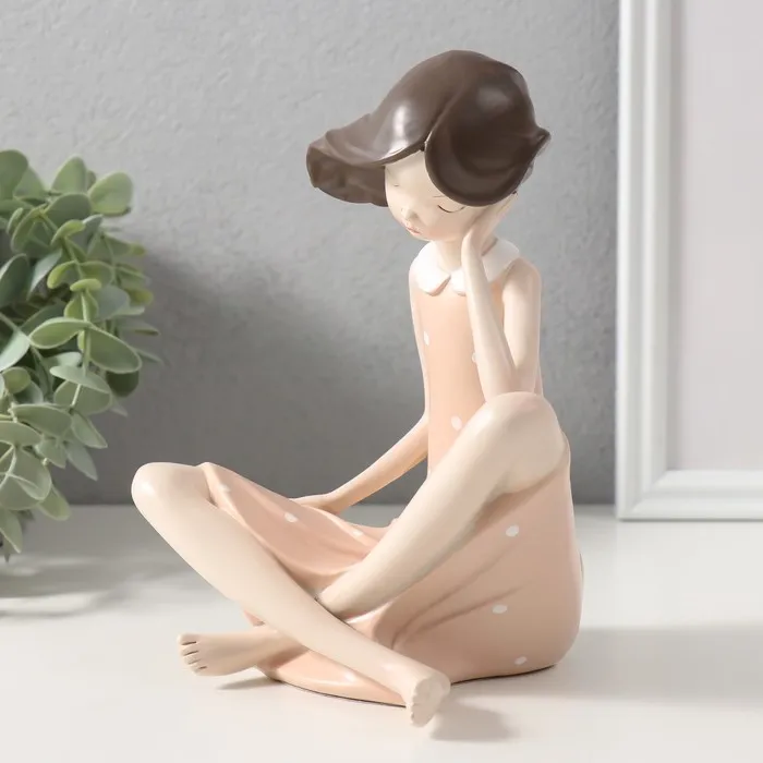 Сувенир полистоун "Малышка в персиковом платье в горошек" 14х11,5х19 см — Характеристики