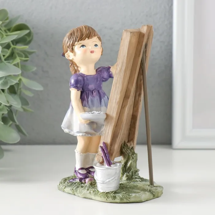Сувенир полистоун "Малышка в сиреневом платье, рисует картину" 8,5х7х12,5 см — Характеристики