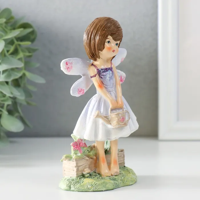 Сувенир полистоун "Малышка в сиреневом платье с крыльями, с леечкой" 7,5х5х13 см — Характеристики