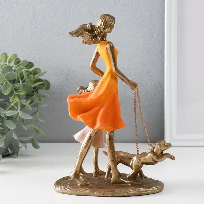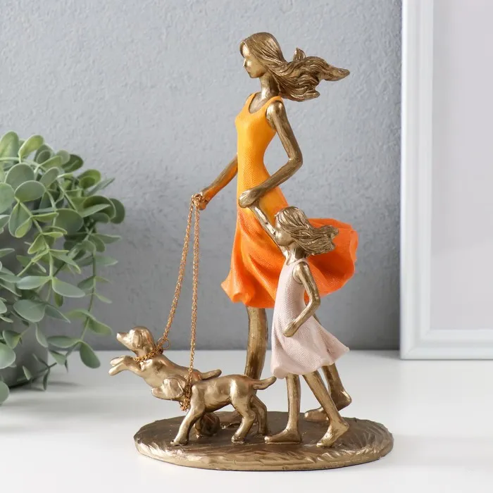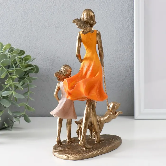 Сувенир полистоун "Мама с дочкой на прогулке с собаками" бронза, оранжевый 16х9,5х24 см — Характеристики