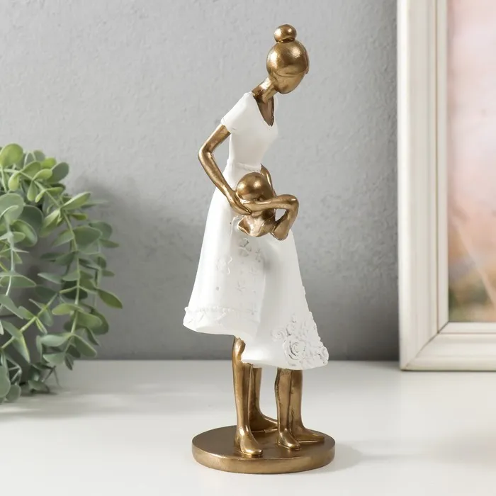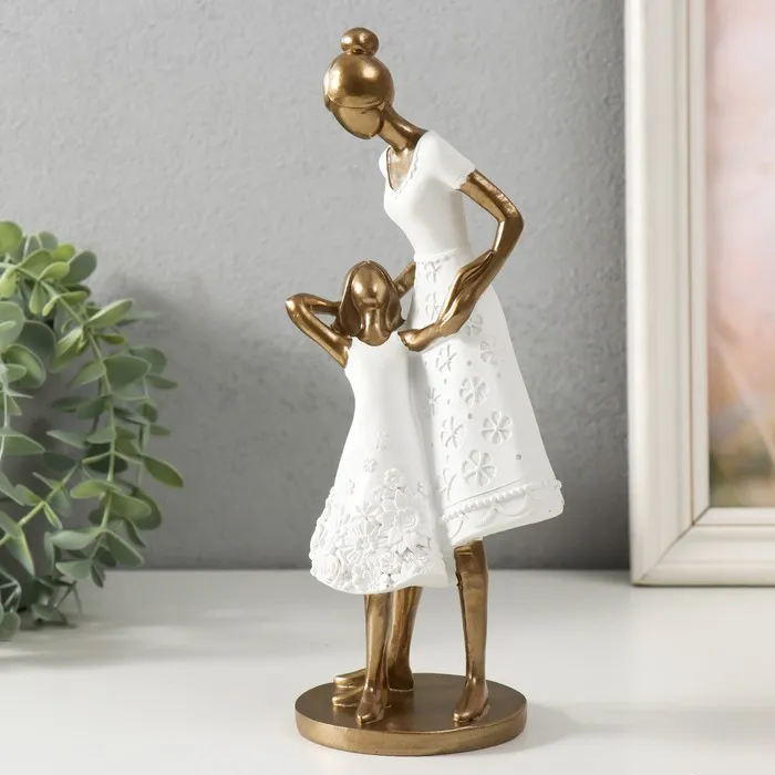 Сувенир полистоун "Мама с дочкой, в белых платьях с цветами" 9х8,5х23,5 см — Характеристики