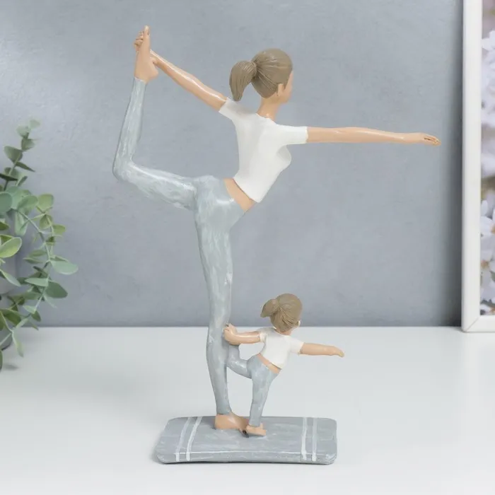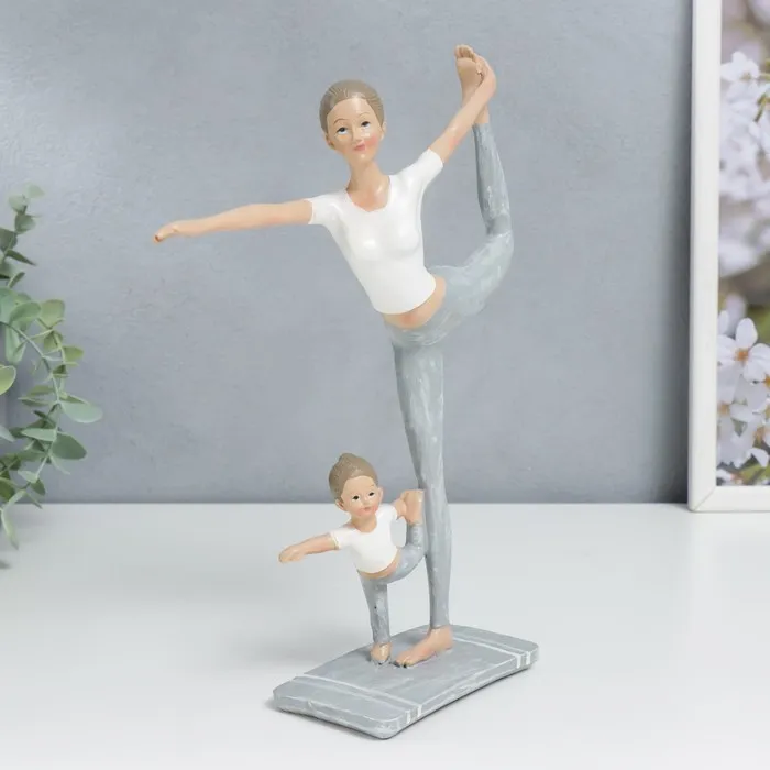 Сувенир полистоун "Мама с дочкой в позе танцора" бело-серый 25,5х6,5х19,5 см — Характеристики
