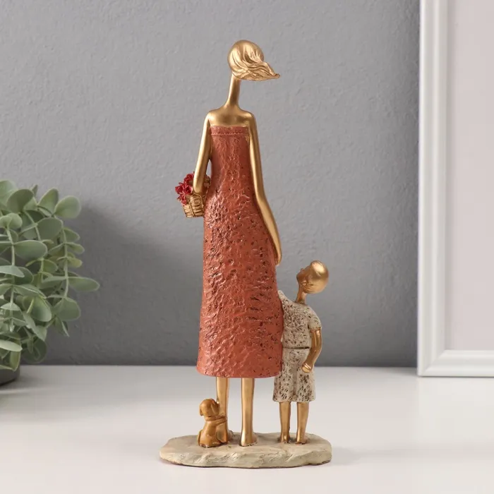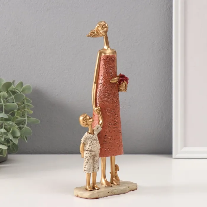 Сувенир полистоун "Мама с сыном с корзинкой цветов" красно-бордовый 5х9,8х24 см — Характеристики