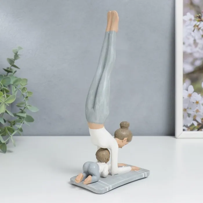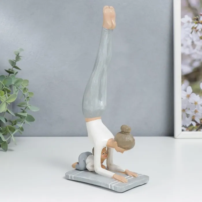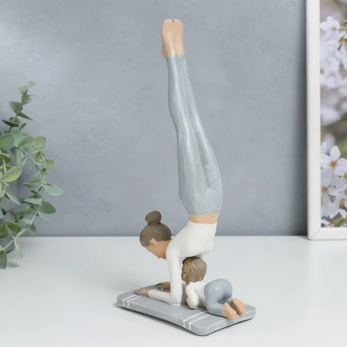 Сувенир полистоун "Мама в стойке на предплечьях, с малышом" бело-серый 24х6,5х11 см — Характеристики