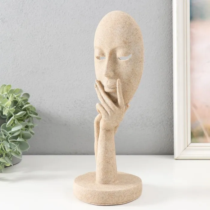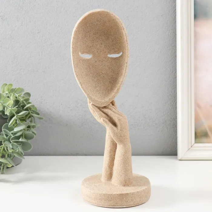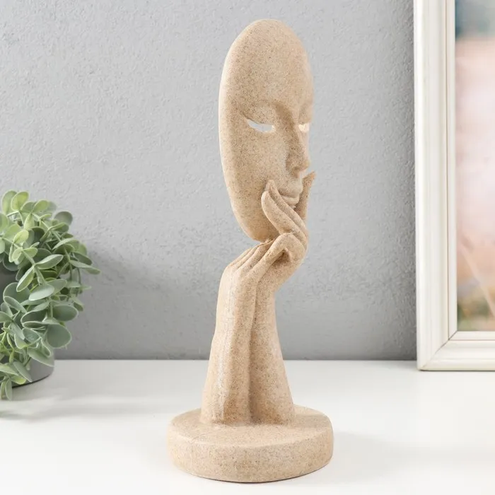 Сувенир полистоун "Маска - лицо девушки" песочный 11,5х11,5х29 см