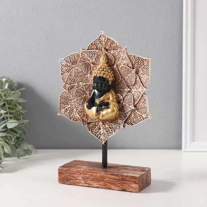Сувенир полистоун "Медитация Будды в цветке" золото 5,5x13,2x23 см — Характеристики
