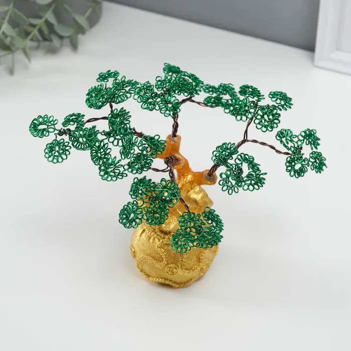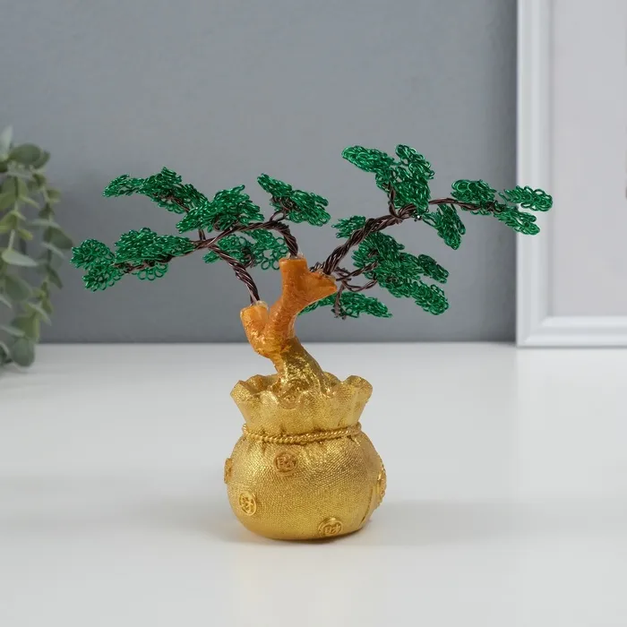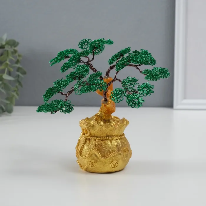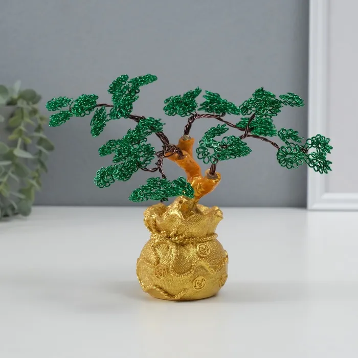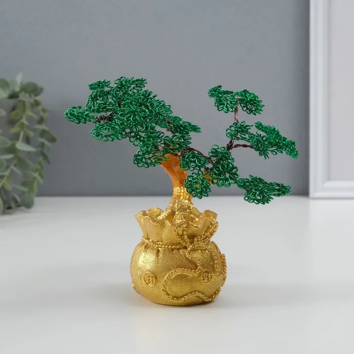 Сувенир полистоун, металл "Дерево жизни в мешке" зелёное 6х17х17 см — Характеристики