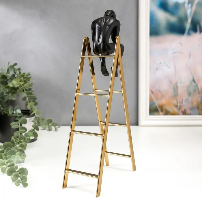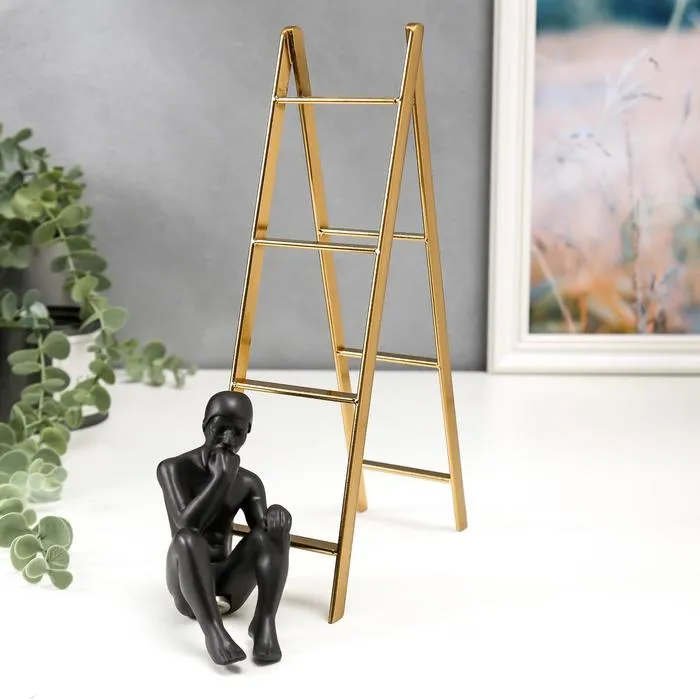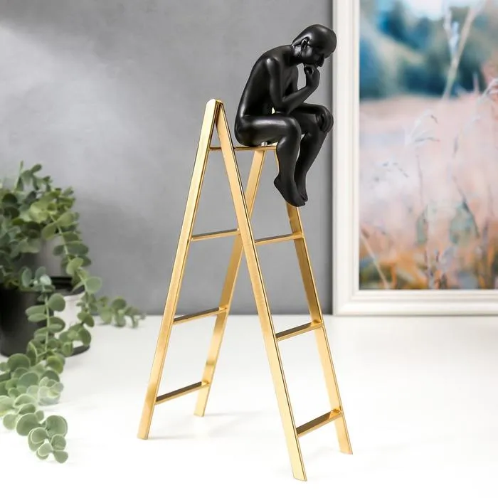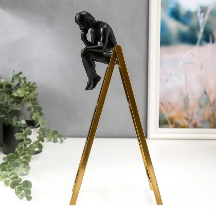 Сувенир полистоун, металл "Мыслитель на лестнице" чёрный с золотом 30,6х6,7х16 см — Характеристики