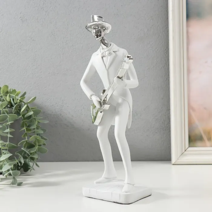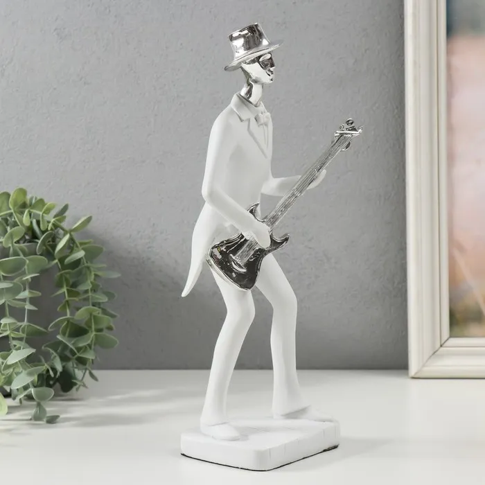 Сувенир полистоун "Музыкант с гитарой" белый с серебром 27,5х7,5х12,5 см — Характеристики