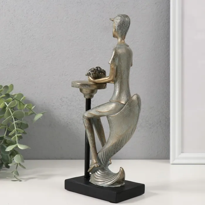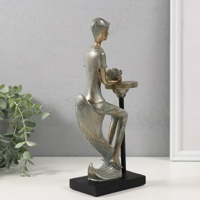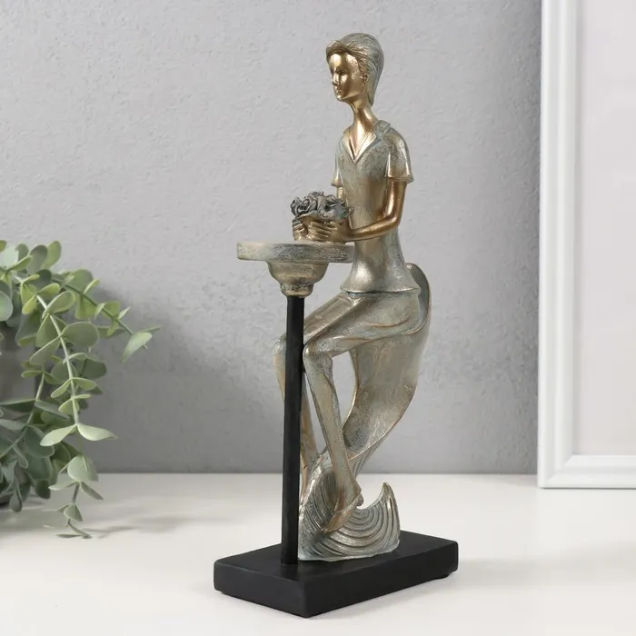 Сувенир полистоун "Парень с букетом в ожидании девушки" бронза с патиной 11,5х6х26 см — Характеристики