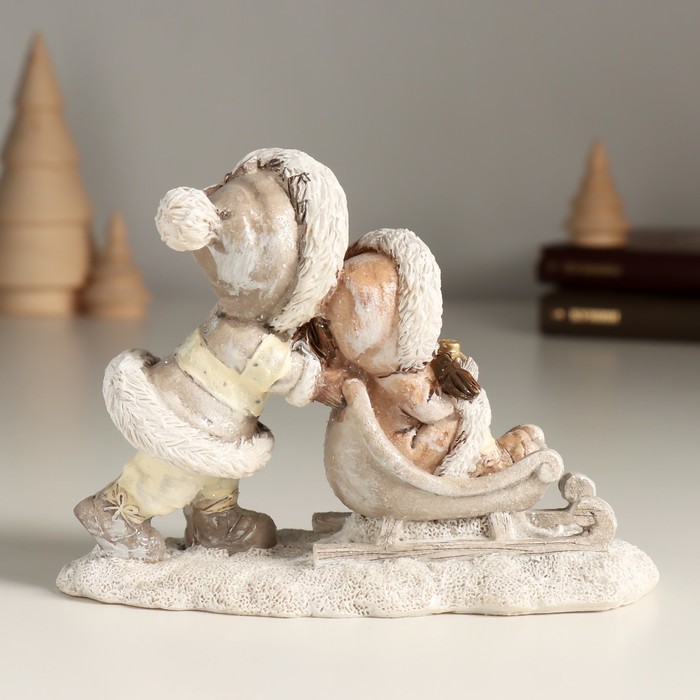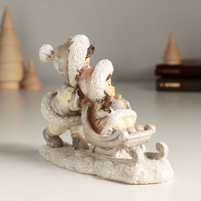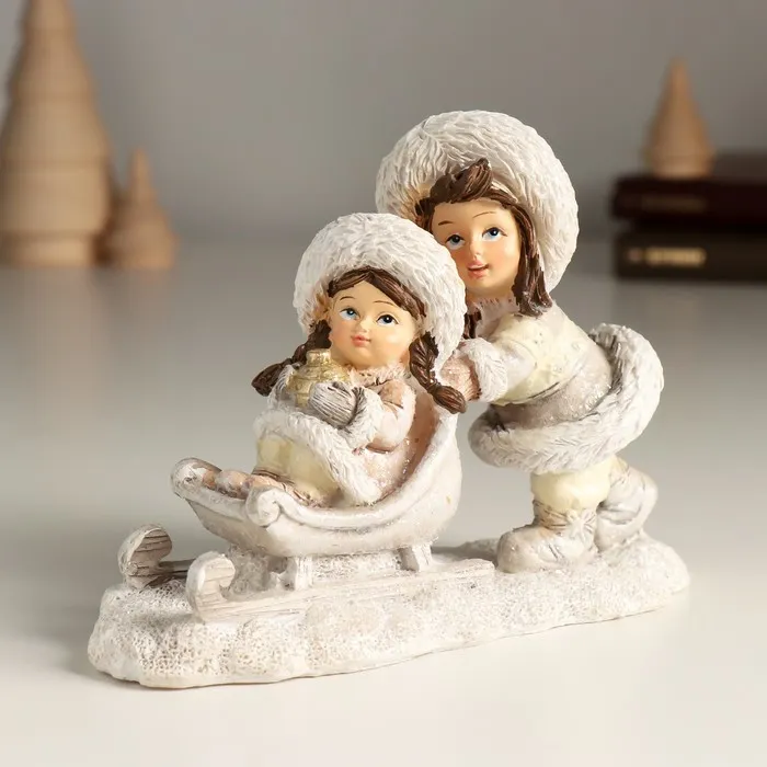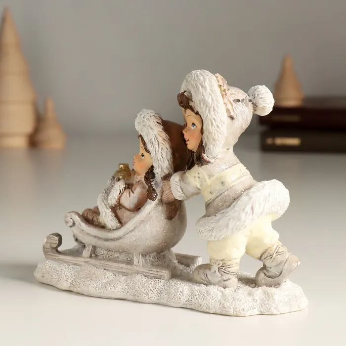 Сувенир полистоун "Подружки в белом на санках" 14х5,5х10 см