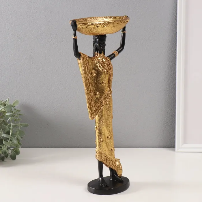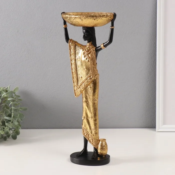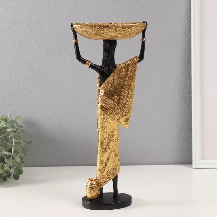 Сувенир полистоун подставка "Африканка Зэмба в золотом одеянии с чашей на голове" 8х15х37 см 10686 — Характеристики