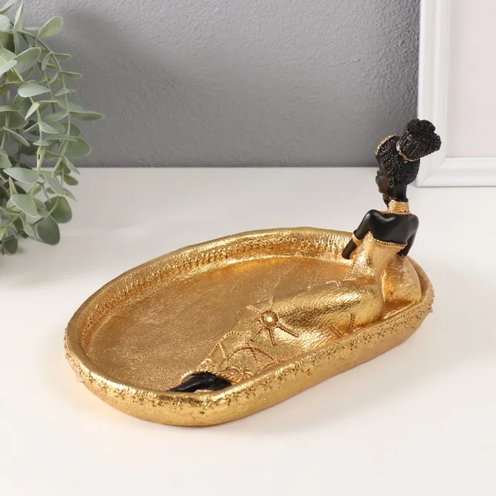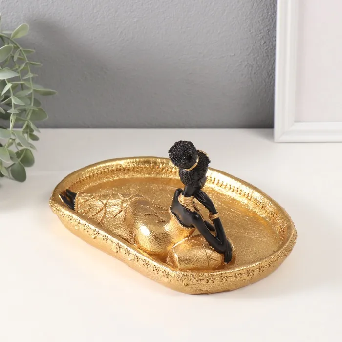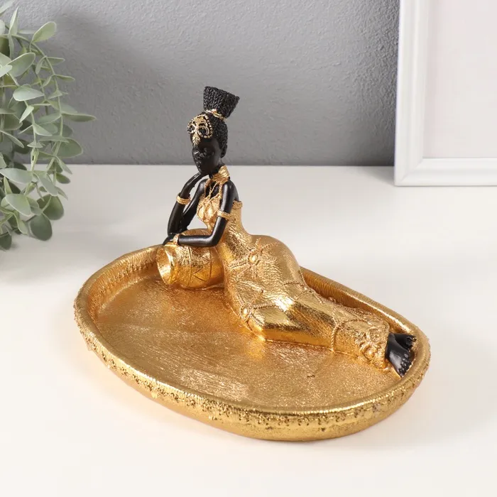 Сувенир полистоун подставка "Африканка Зэмба в золотом платье с вазой" 17х25х14,5 см — Характеристики