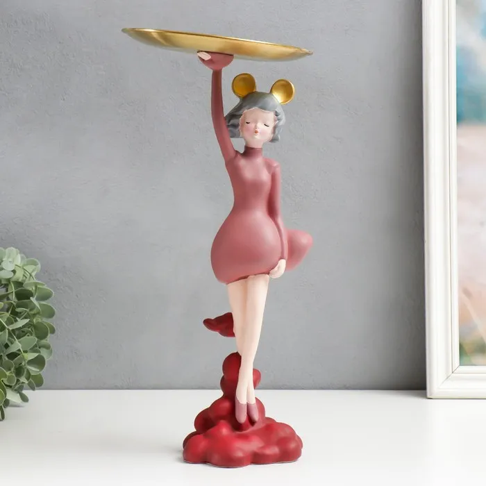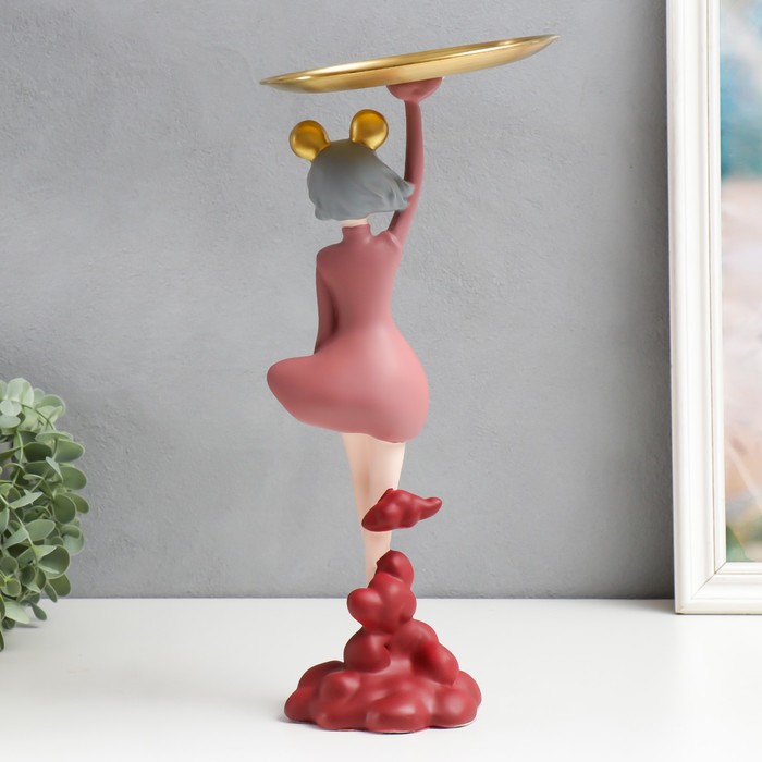Сувенир полистоун подставка "Девушка ушки мишки, сердца" розовый 36х17х17 см — Характеристики