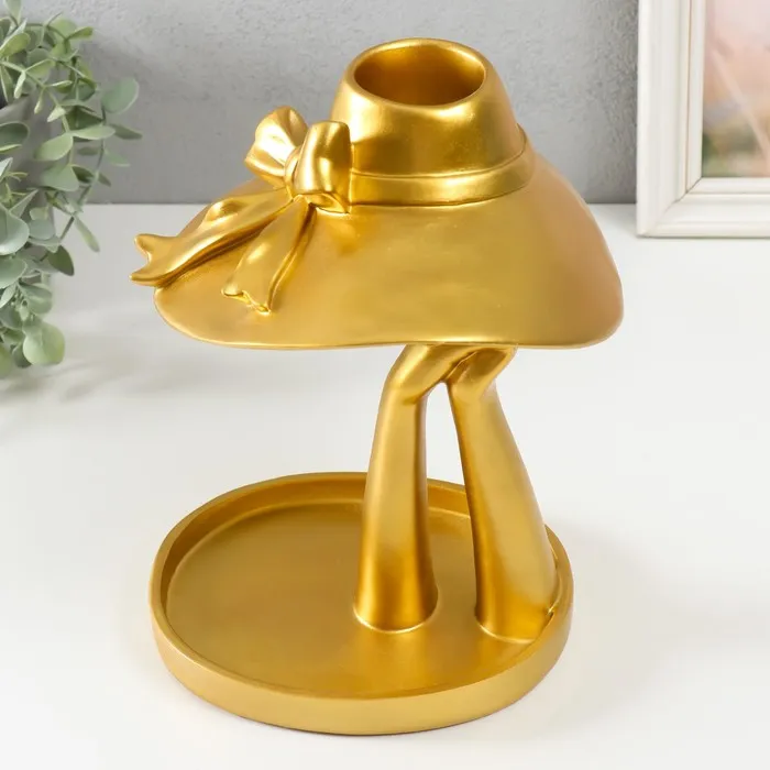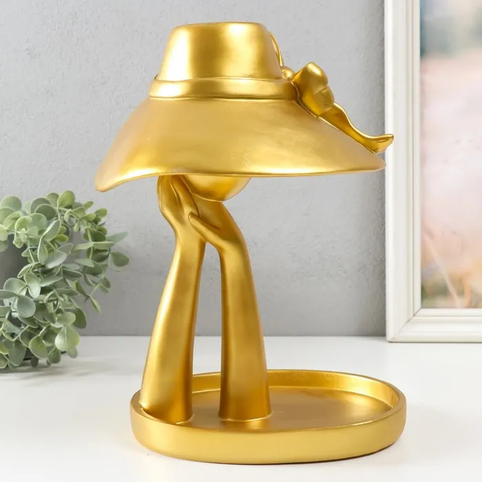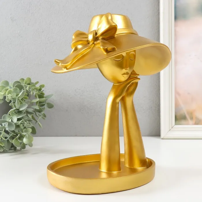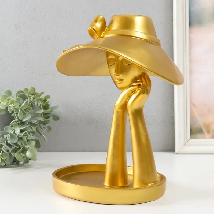 Сувенир полистоун подставка "Девушка в шляпке с бантом" Золото 28х21х19 см