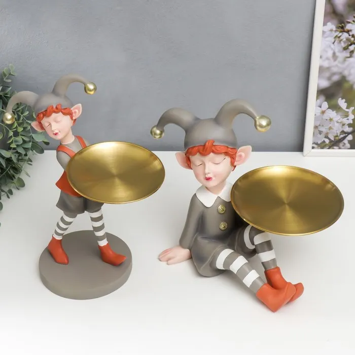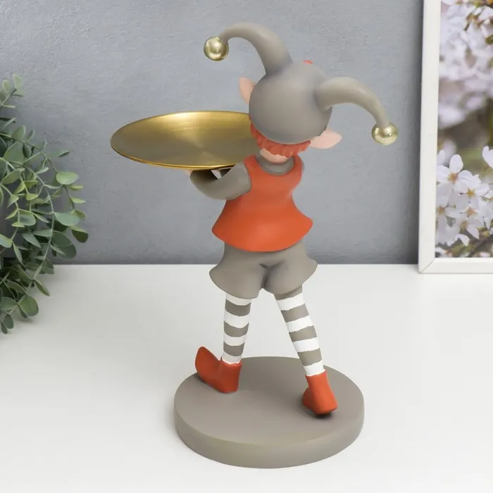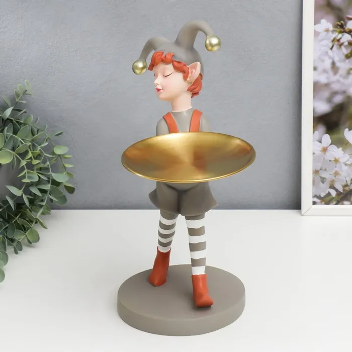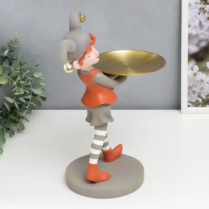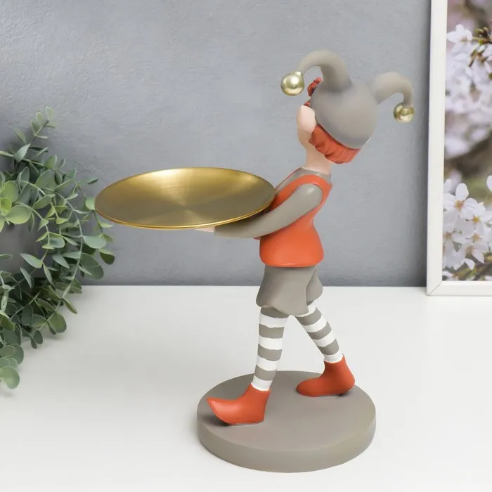 Сувенир полистоун подставка "Малыш в костюме скомороха" оранжево-серый 33х14,5х21 см — Характеристики
