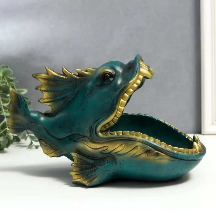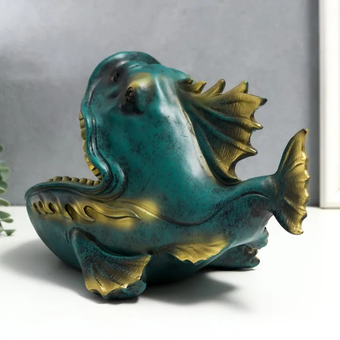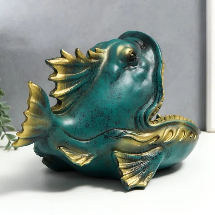 Сувенир полистоун подставка "Рыба-дракон" тёмно-зелёный 17х16х29 см