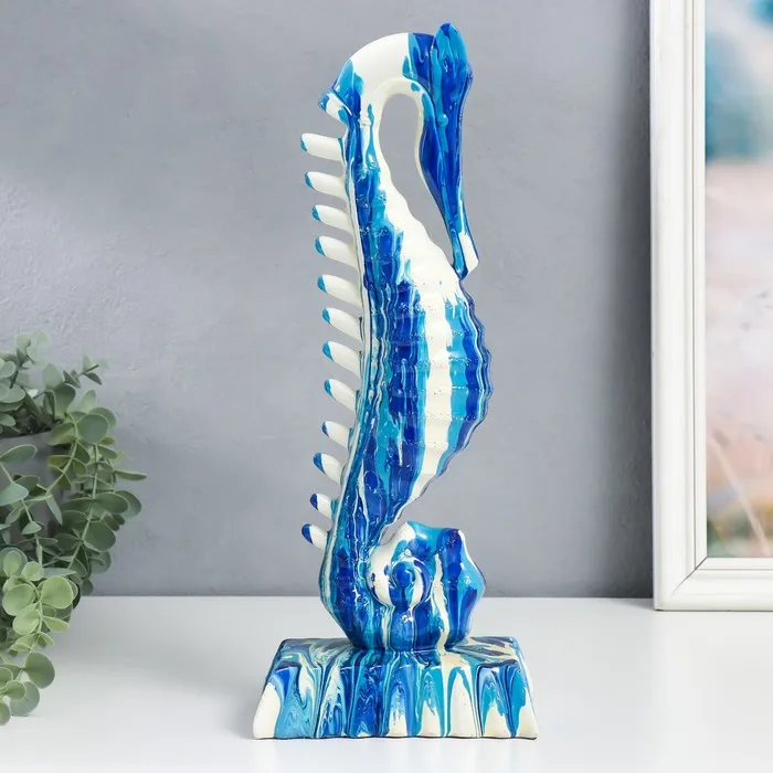 Фигурка полистоун «Морской конёк», разводы краски, голубой, 10×15.5×37.2 см