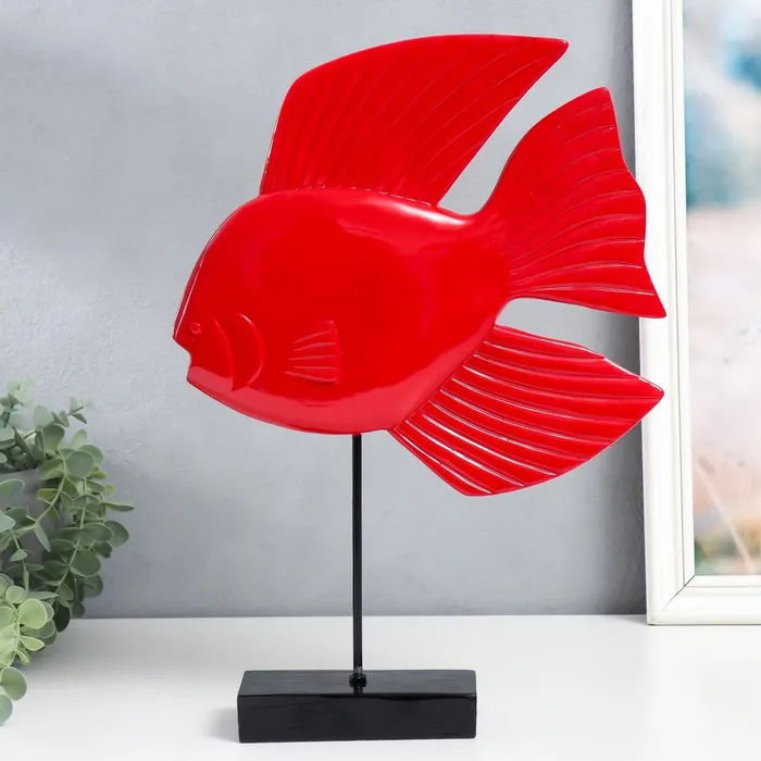 Фигурка полистоун «Рыба на подставке», красный, 6.8×29×38.5 см
