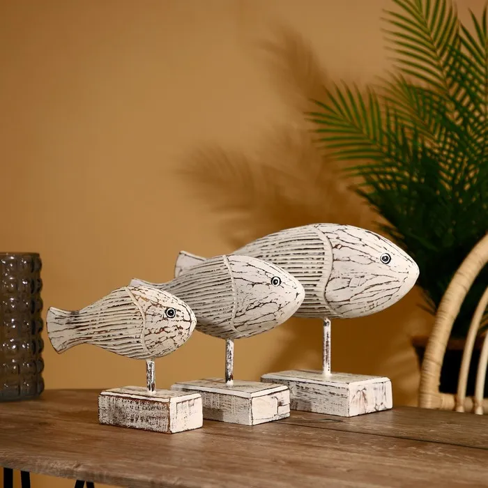 Сувенирный набор «Рыбки с яркими лепестками», 3 шт., 20×8×25 см, дерево