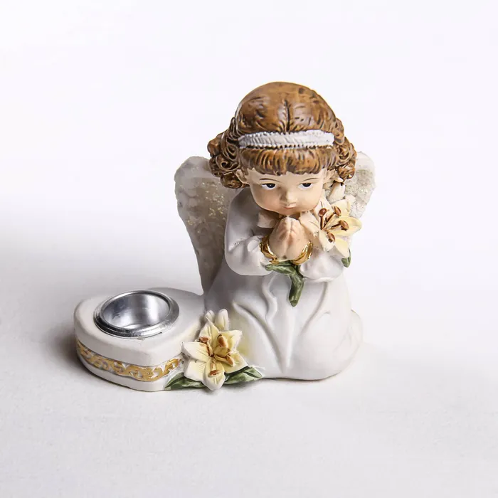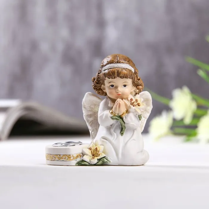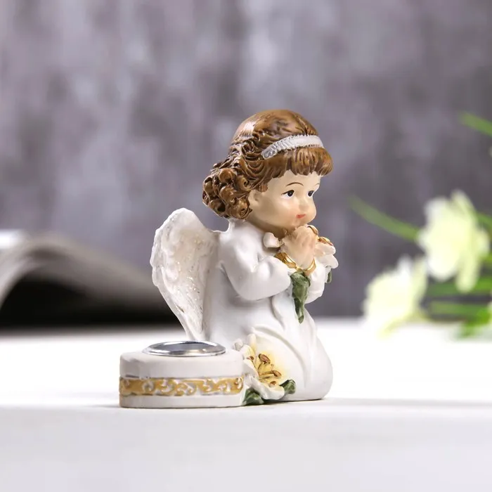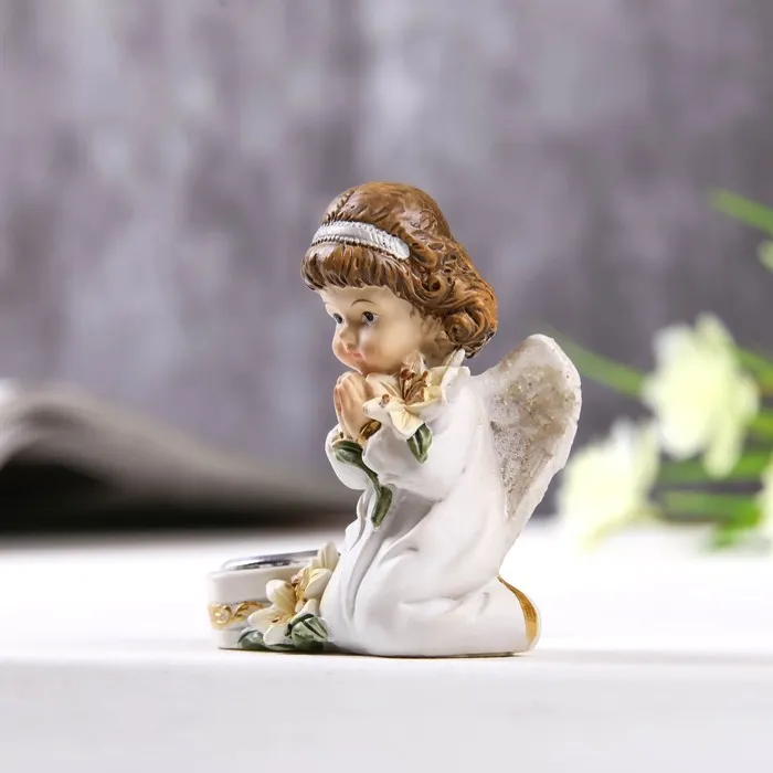 Сувенир полистоун подсвечник "Ангелочек в платье, с лилией" МИКС 6,5х6,5х3,4 см — Характеристики
