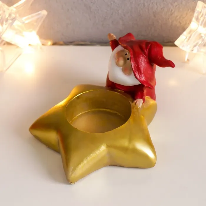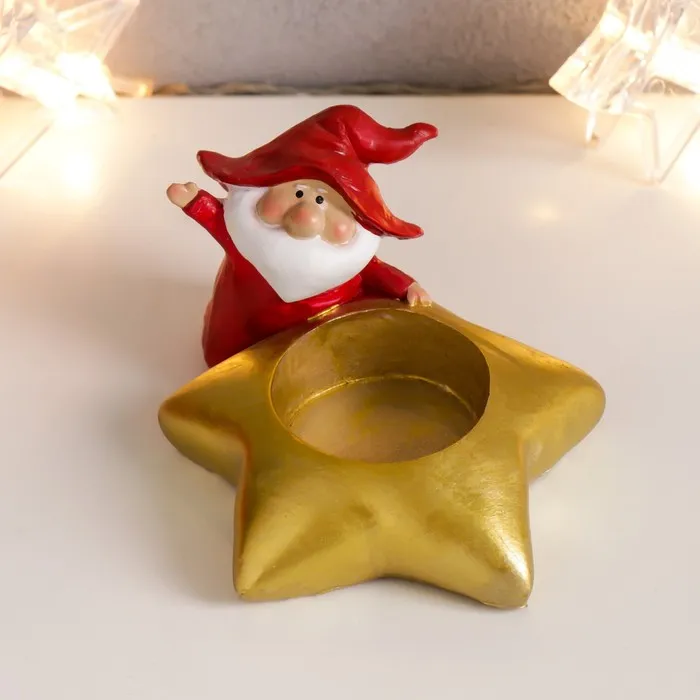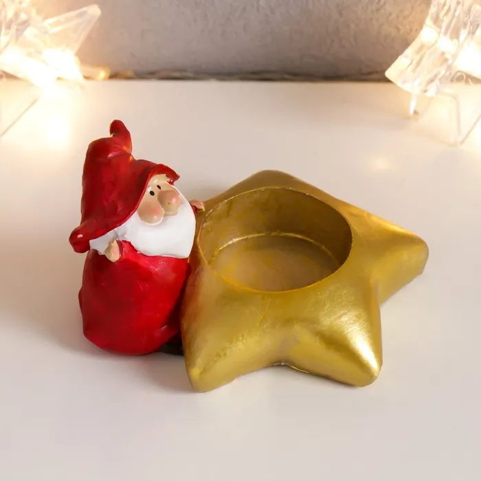 Сувенир полистоун подсвечник "Дедушка Мороз в колпаке гнома"МИКС 5,5х10х8,5 см — Характеристики