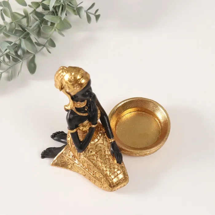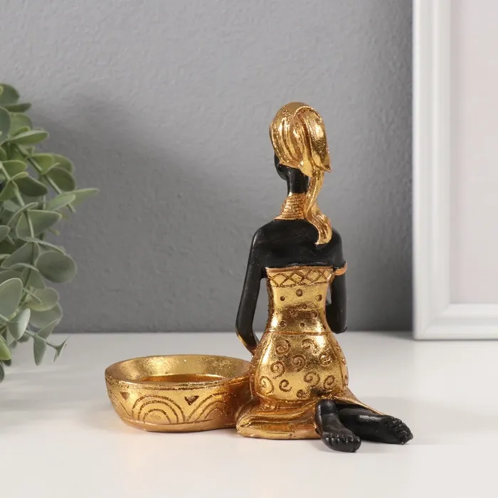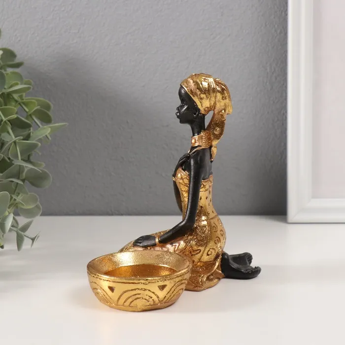 Сувенир полистоун подсвечник"Африканка Рудо в золотом платье у тазика"d=4 см 9,5х12,5х14 см — Характеристики