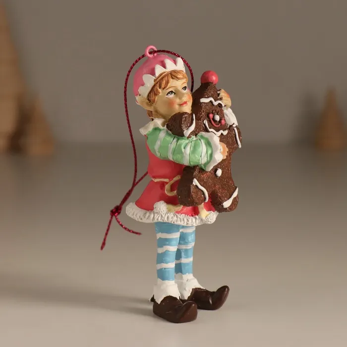 Сувенир полистоун подвеска "Новогодний эльф с имбирной печенкой" 6х4х10,5 см — Характеристики