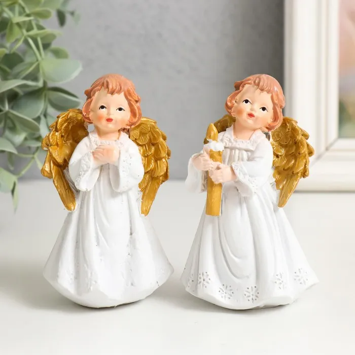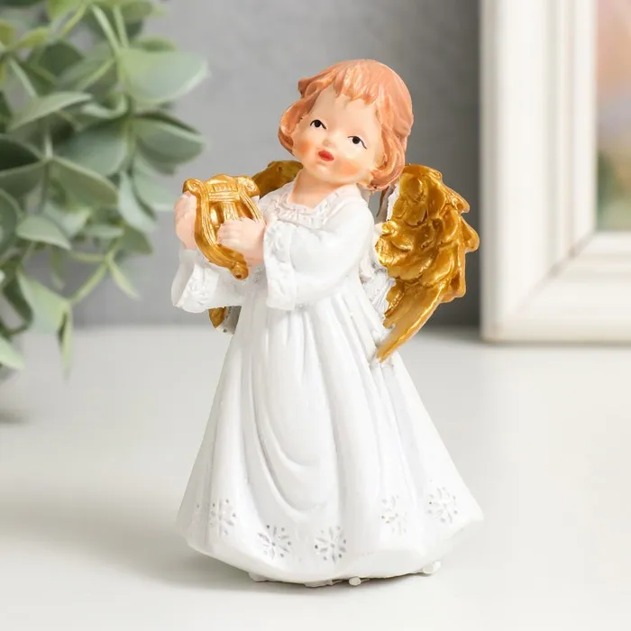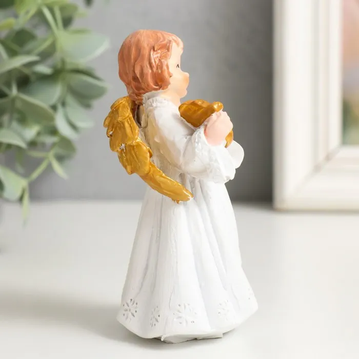 Сувенир полистоун "Праздничный ангел в белом платье" золотые крылья МИКС 6х5х9,5 см — Характеристики