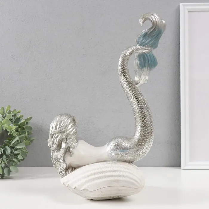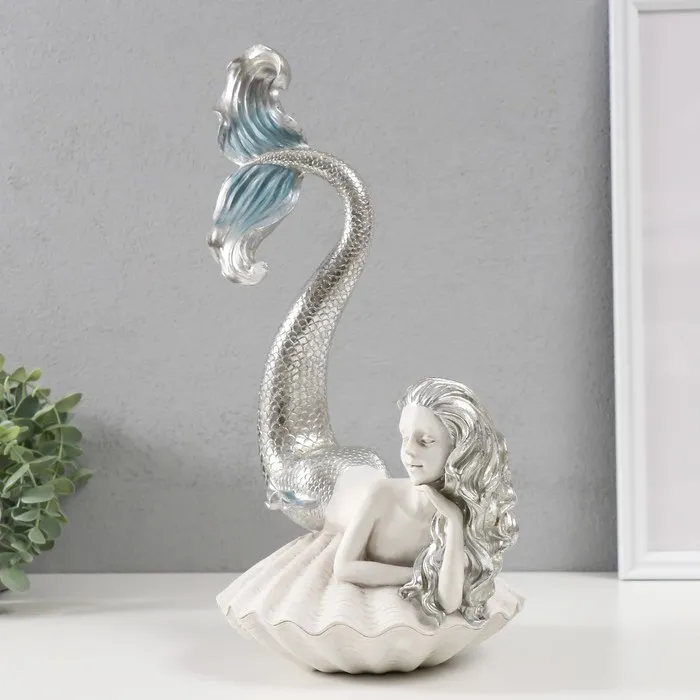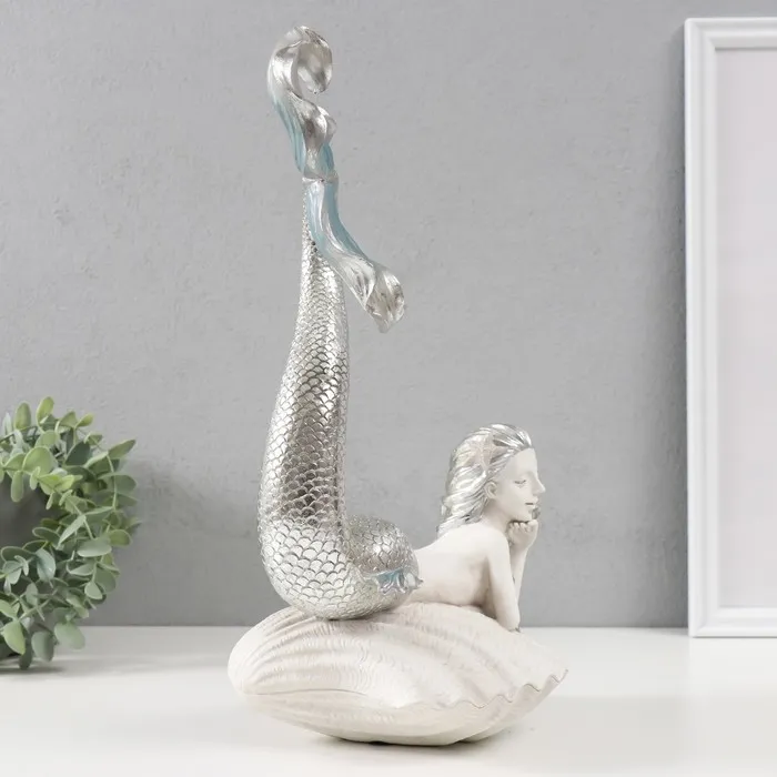 Сувенир полистоун "Русалка на ракушке" белая с серебром 23х16х35,9 см