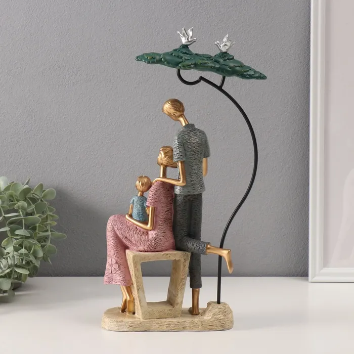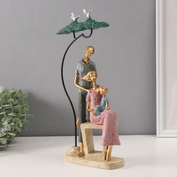 Сувенир полистоун "Семья с ребенком под деревом" розово-голубой 6,5х20х35 см — Характеристики