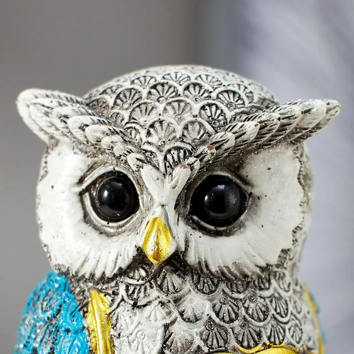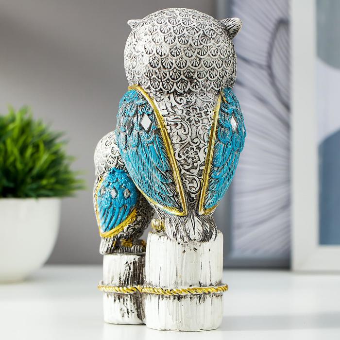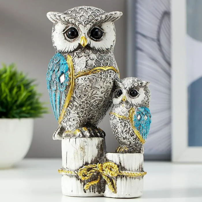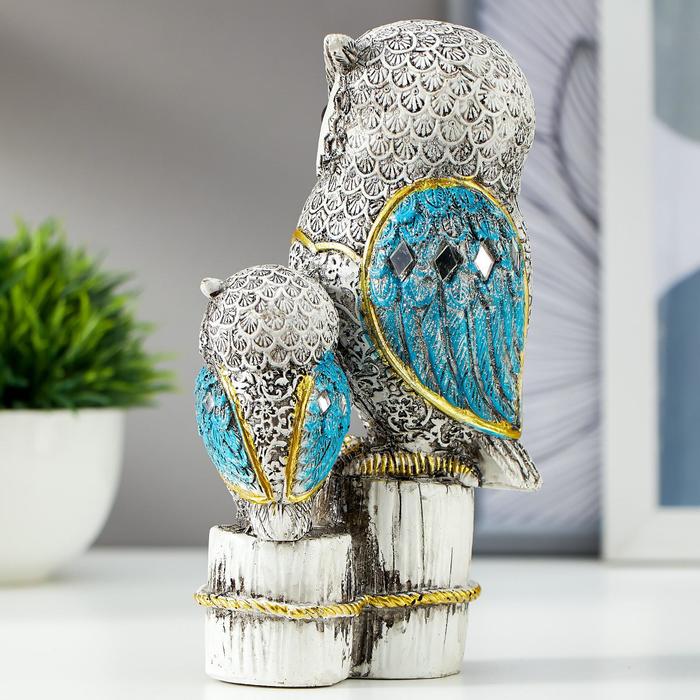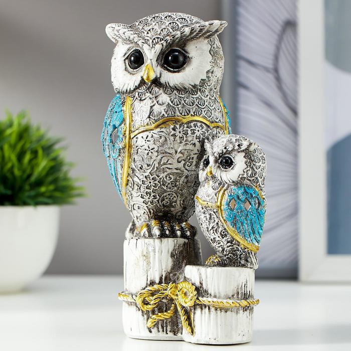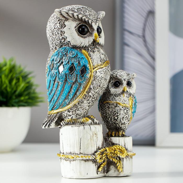 Сувенир полистоун "Серый филин с синими крыльями, с совёнком на пеньках" 16,8х9,5х5 см — Характеристики