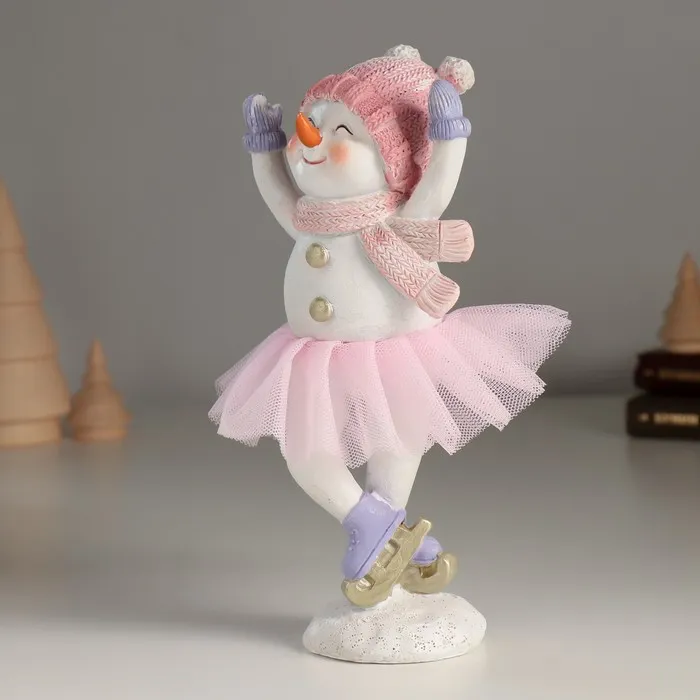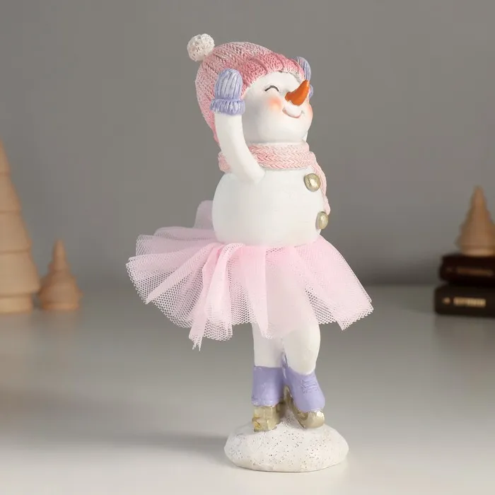 Сувенир полистоун "Снеговичок в розой юбке" 8,5х7х18 см — Характеристики