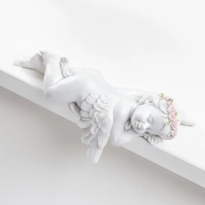 Сувенир полистоун "Спящий белоснежный ангел с венком" 7,5х16,5х6,5 см — Характеристики