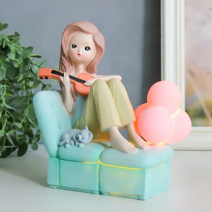 Сувенир полистоун свет "Девчонка на диване с гитарой/пёсиком" МИКС 13х7,5х16 см — Характеристики