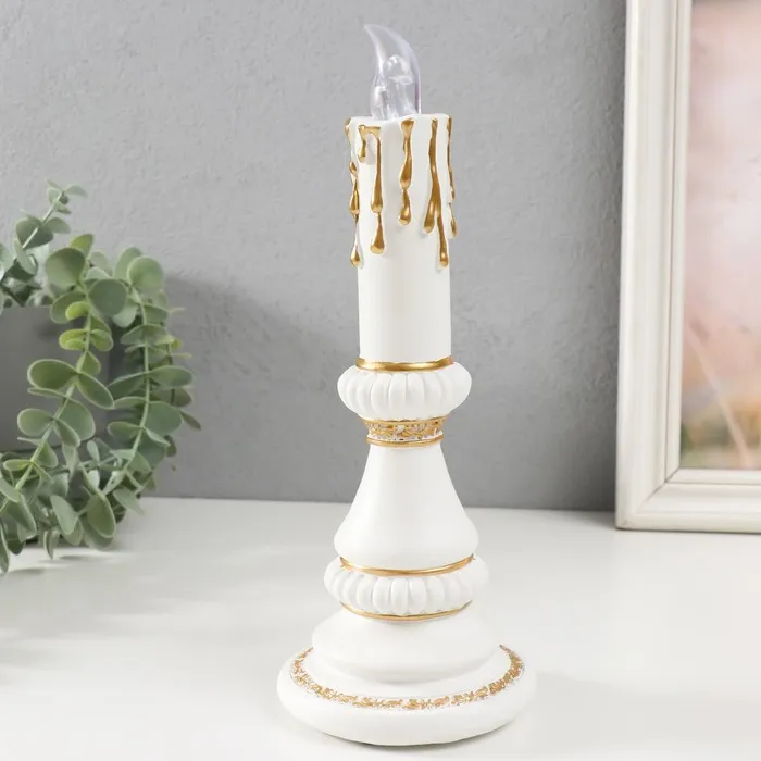Сувенир полистоун свет "Свеча" 2хLR44 белый с золотом 10х10х24,5 см — Характеристики