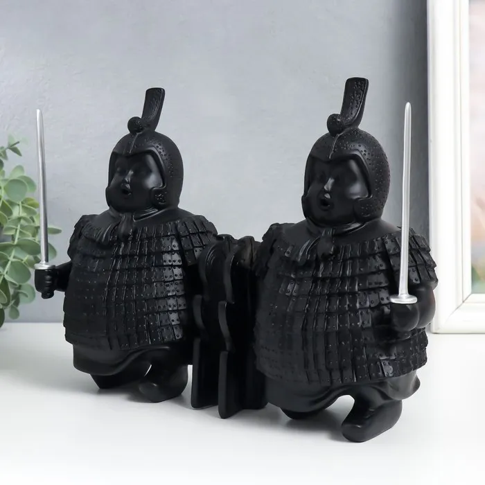 Сувенир полистоун "Терракотовый воин с мечом и щитом" набор 2 шт чёрный 9х13х20 см