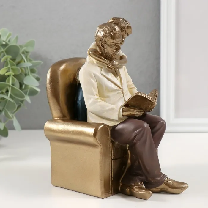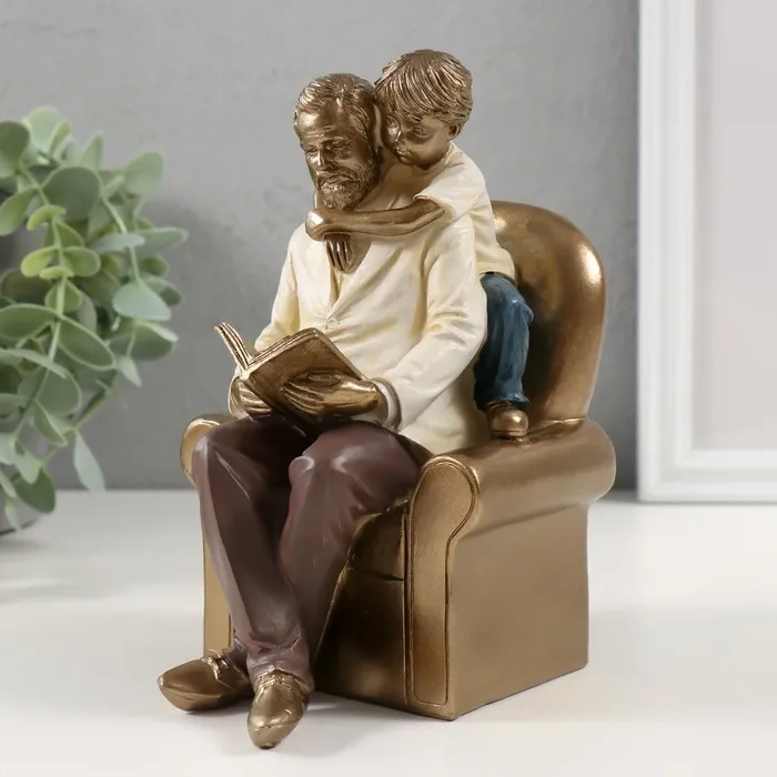 Сувенир полистоун "Уютный вечер с дедушкой за книгой" 13х10,5х16,5 см — Характеристики