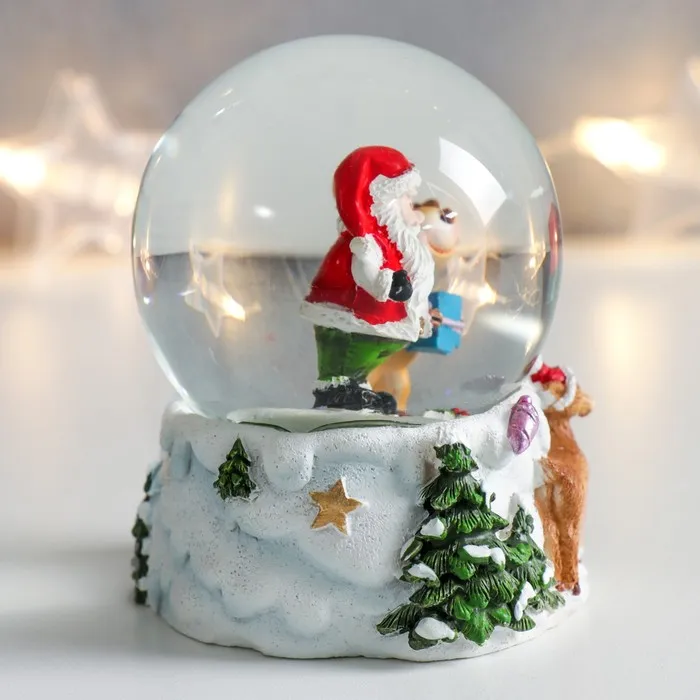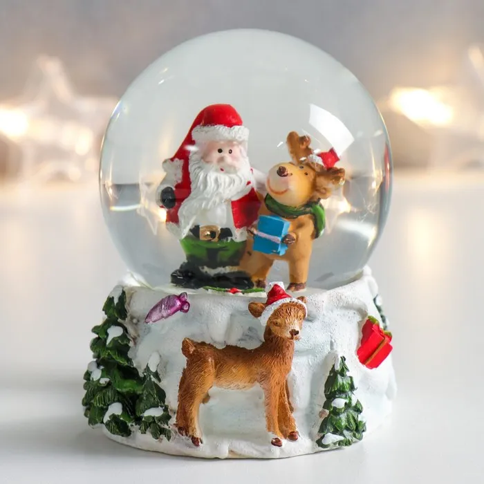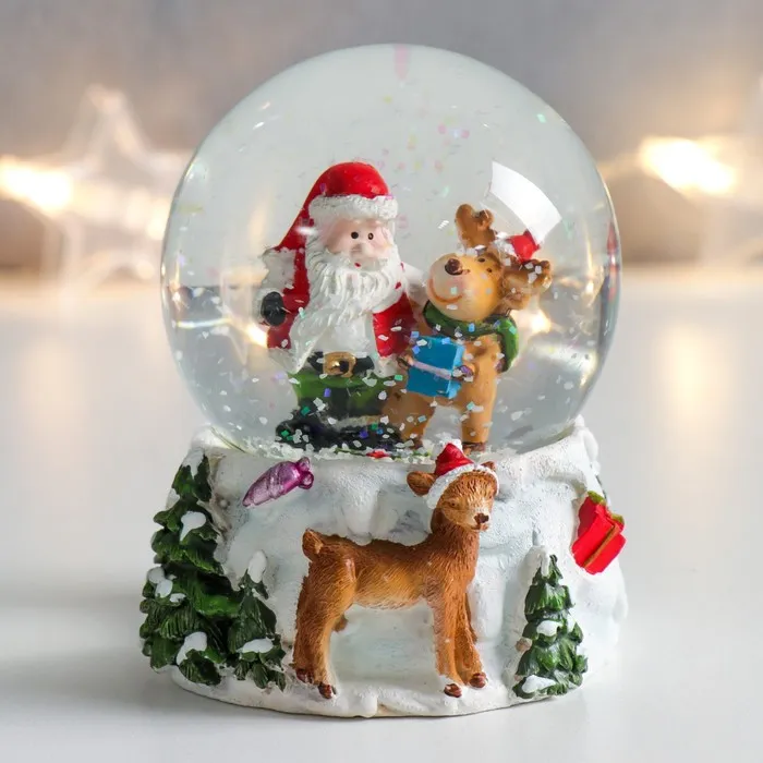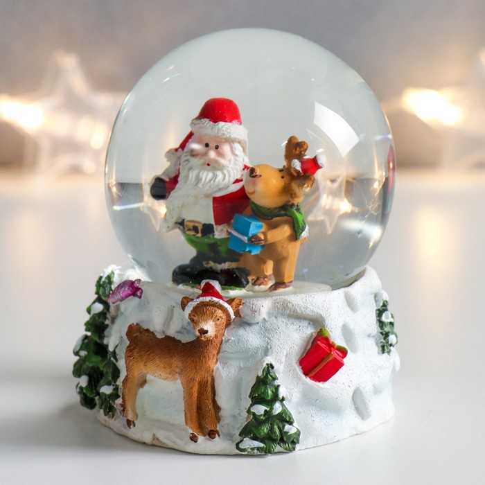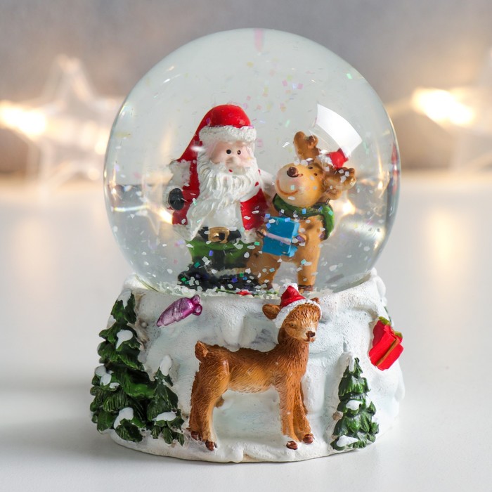 Сувенир полистоун водяной шар "Дед Мороз и олени" 7х6,7х8,8 см — Характеристики