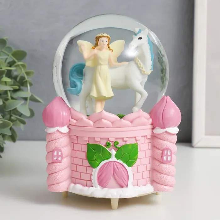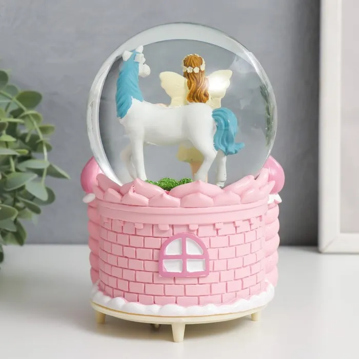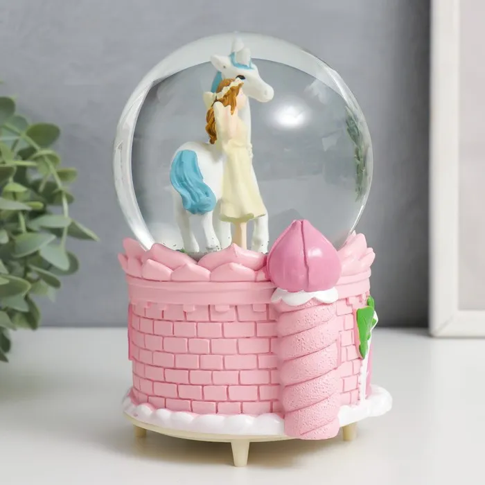 Сувенир полистоун водяной шар музыка "Девочка и единорог" крутится МИКС 15х10х10 см — Характеристики