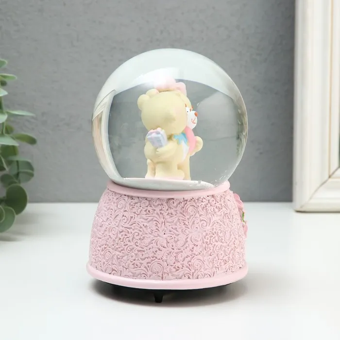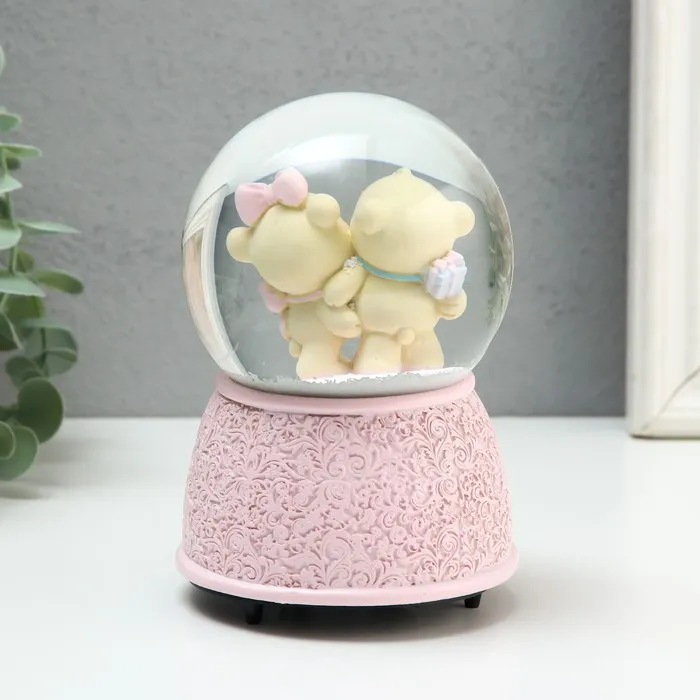 Сувенир полистоун водяной шар музыка и крутится "Влюбленные мишки" МИКС 10,5х10,5х15,5 см