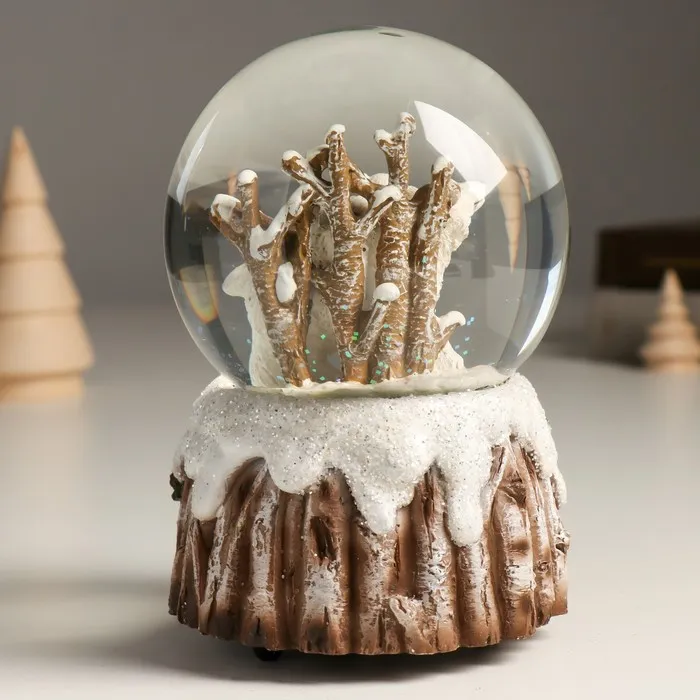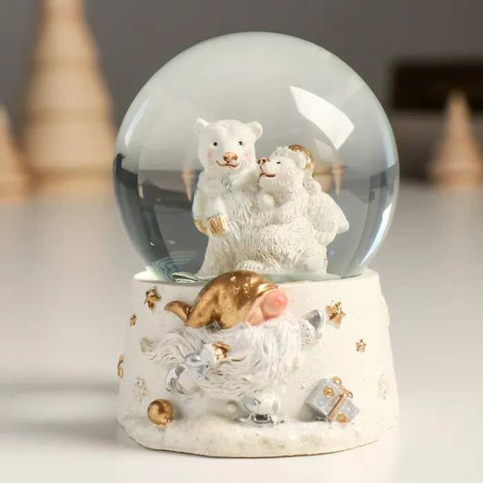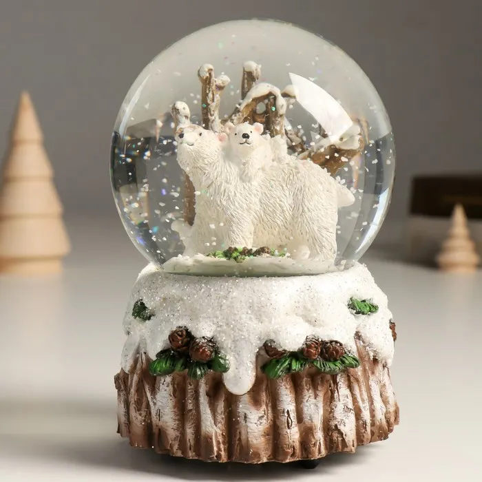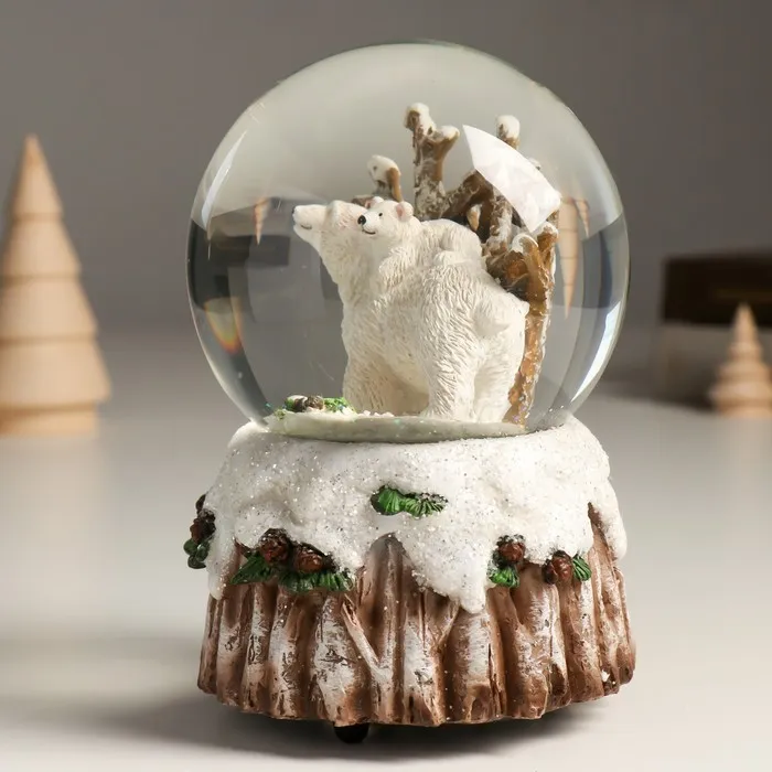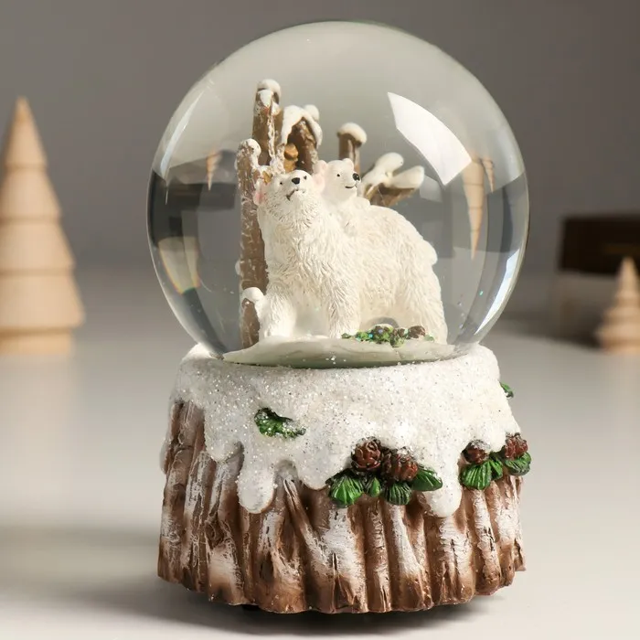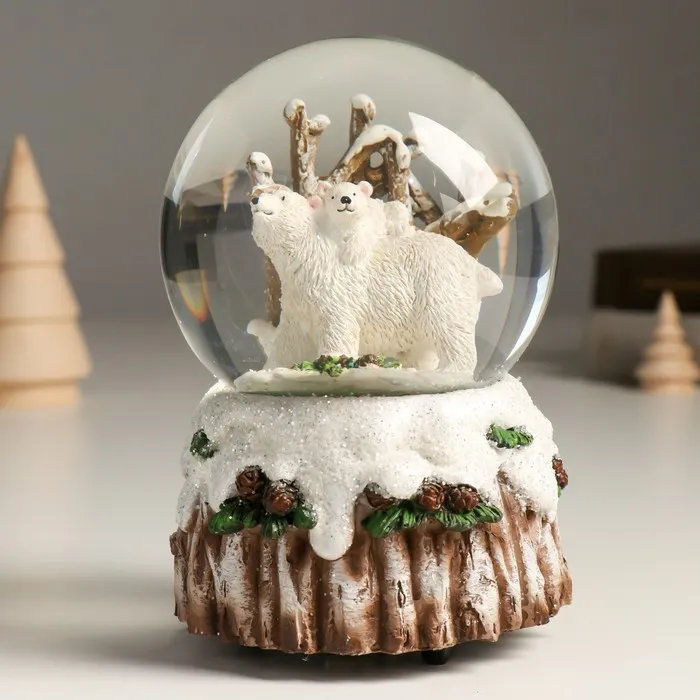 Сувенир полистоун водяной шар музыка механический "Белые медведи в лесу" 11,5х11,5х14 см — Характеристики
