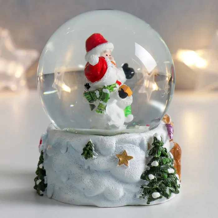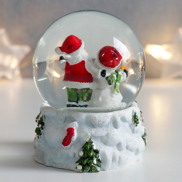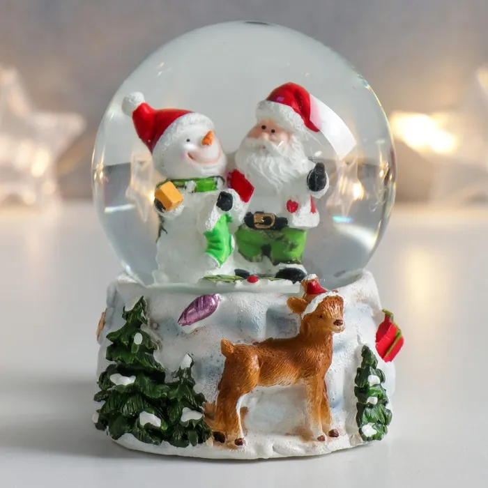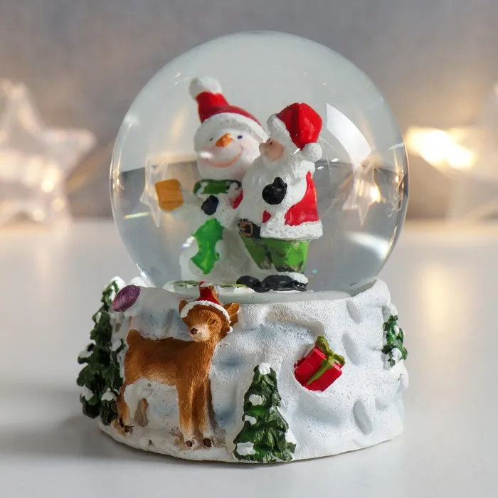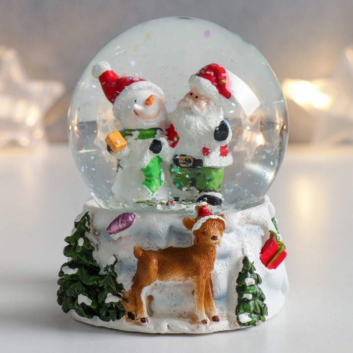 Сувенир полистоун водяной шар "Снеговик и Дед Мороз с оленёнком" 7х6,7х8,8 см — Характеристики