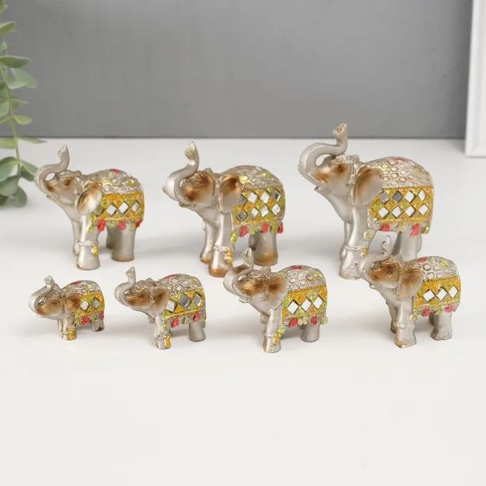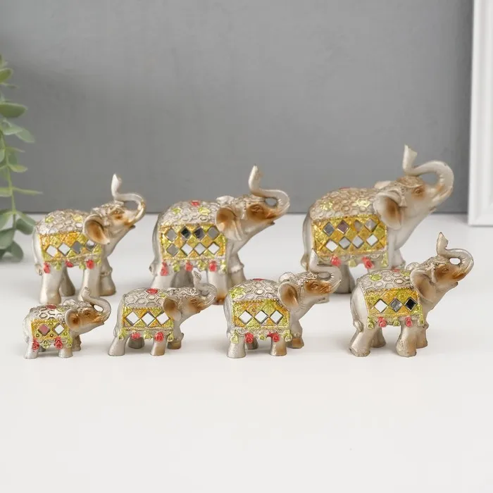Сувенир полистоун зеркальные вставки (набор 7 шт) "Стадо слонов"11, 10, 8,5, 8, 7, 6,3;5,3см — Характеристики