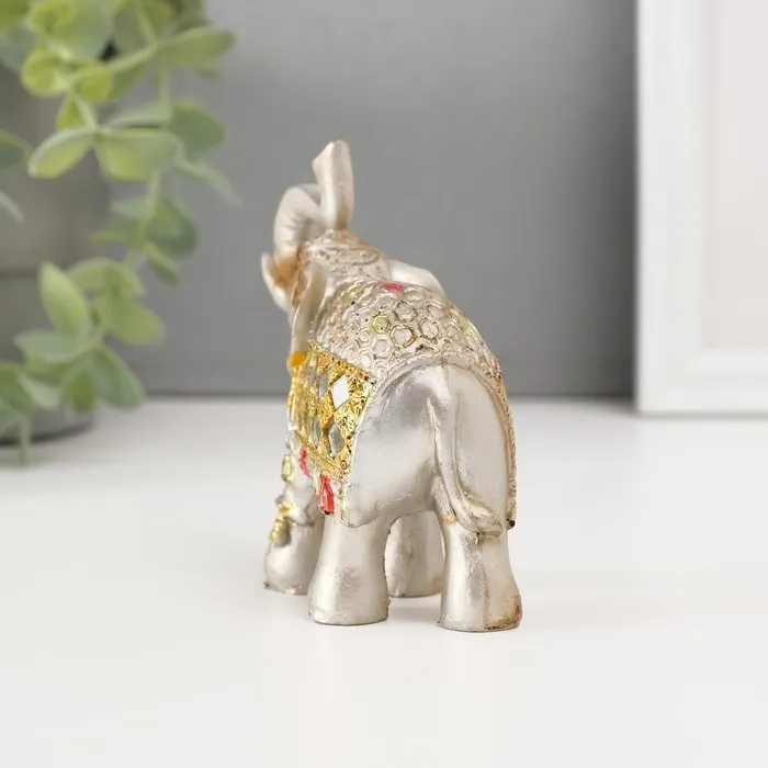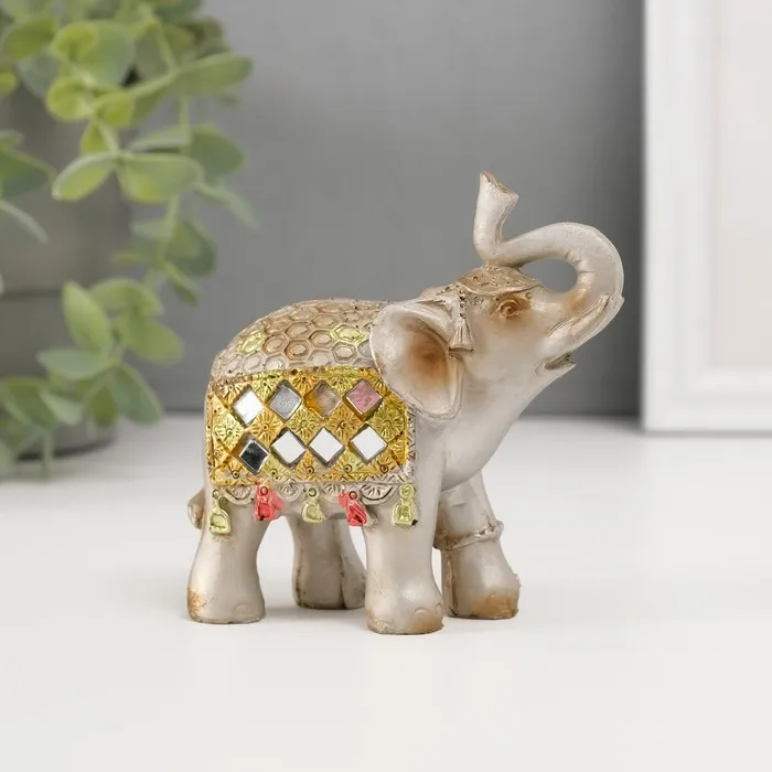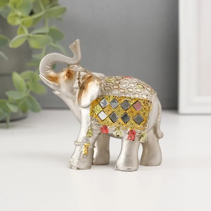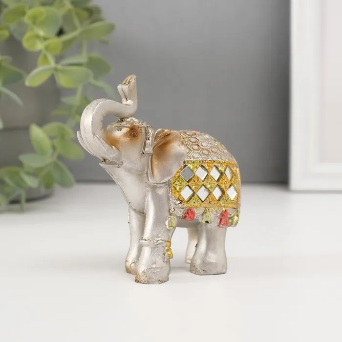 Фигурка полистоун «Бронзовый слон в серебристой попоне с зеркалами», 9.5×5×7 см