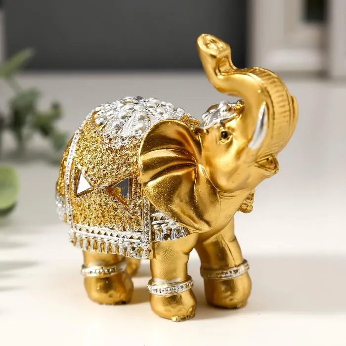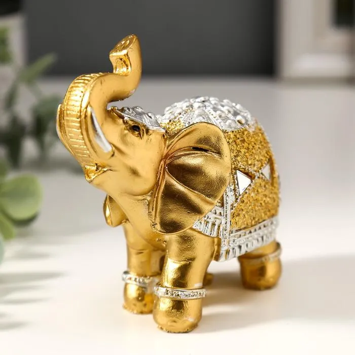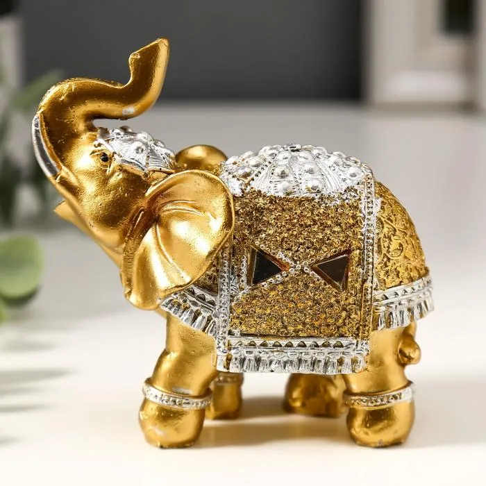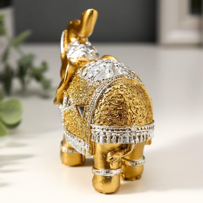 Сувенир полистоун "Золотой слон в зеркальной попоне" 10х11х4,2 см — Характеристики