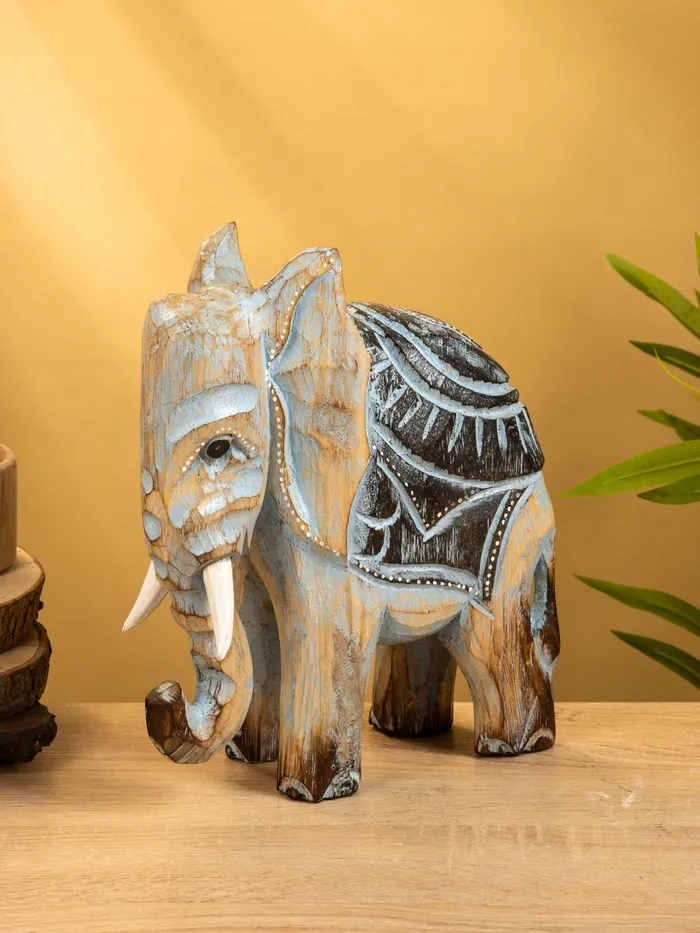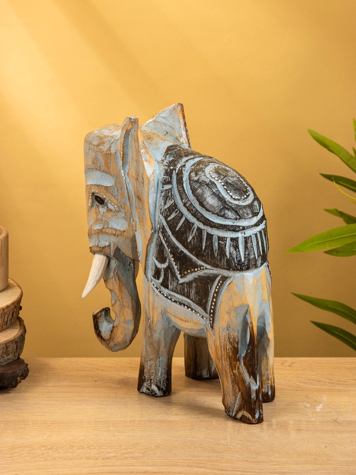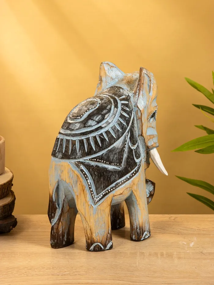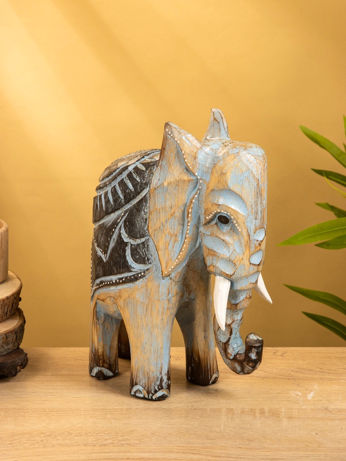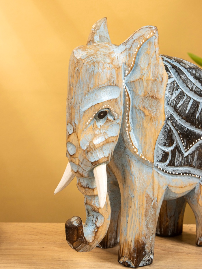 Сувенир «Слон», 24×9×30 см, дерево, коричнево-голубой — Характеристики